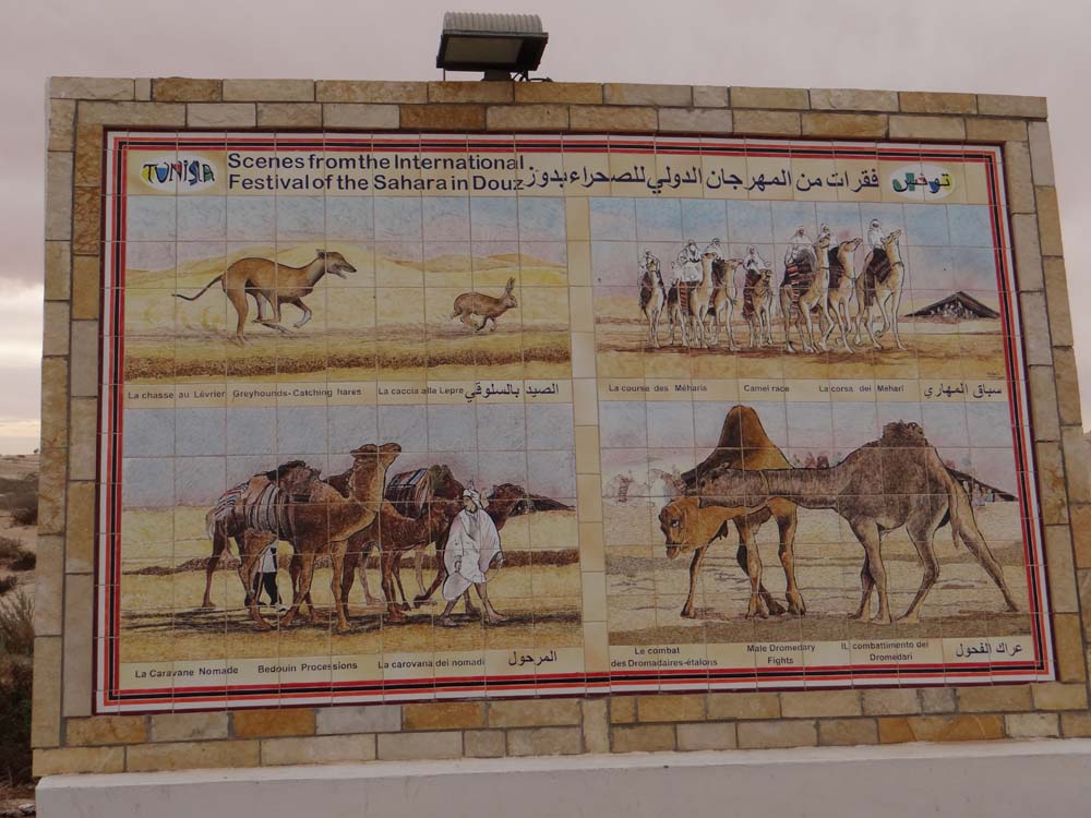 Dave the motorhome is in an oasis, where else (N33.45331 E9.02515)? We’re on the edge of the Sahara (where there is zero Orange signal again), in Camping Desert Club at Douz, Tunisia (see end of post for a short video of this site). Douz has a reputation from reading the Rough Guide and speaking with Arafat at our last campsite, as a tourist town. Trundling about Douz like drunken ants earlier on trying to find the unsigned campsite, it looked like every other Tunisian town – a dusty chaotic fascination.