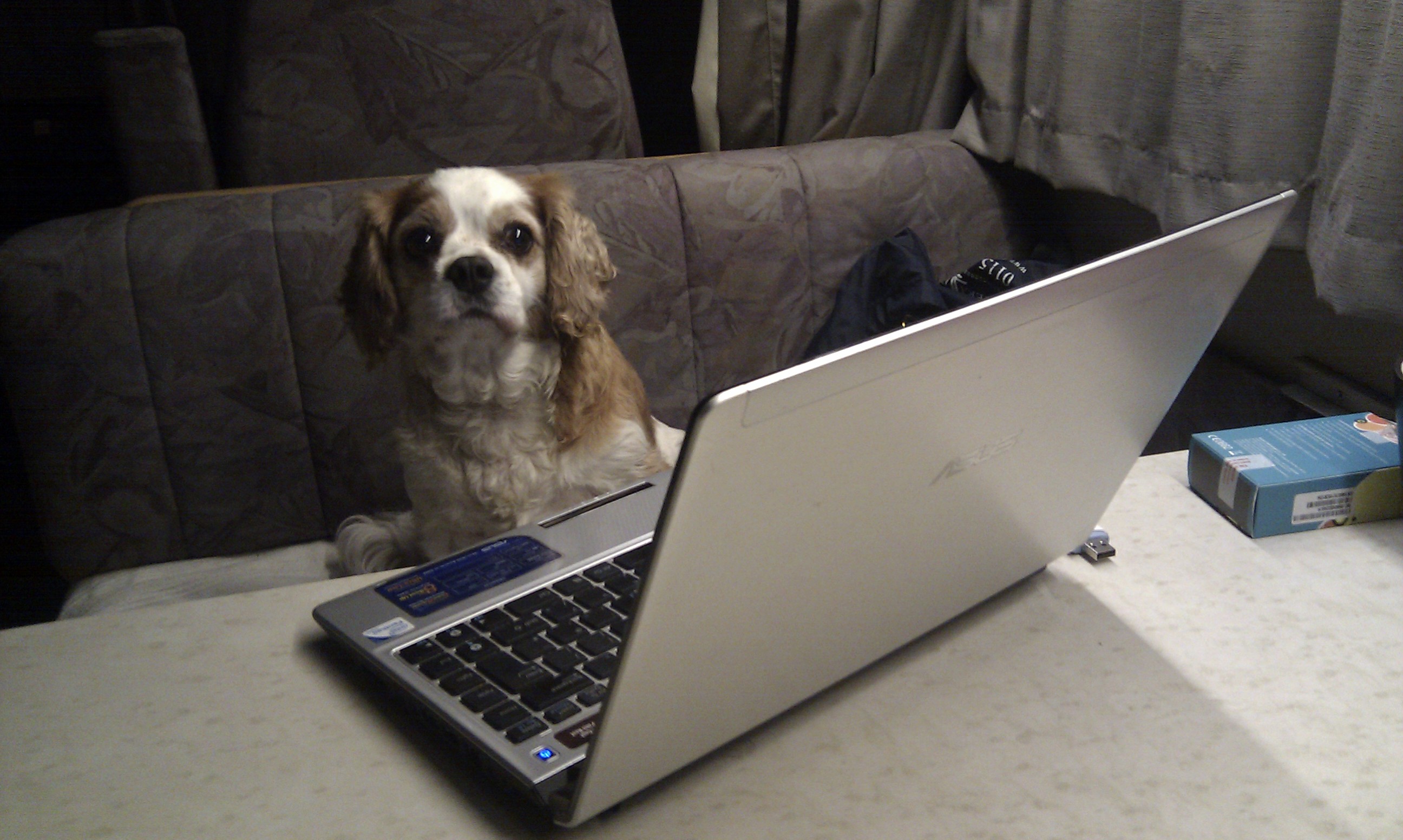 - Charlie making good use of our Orange F internet access