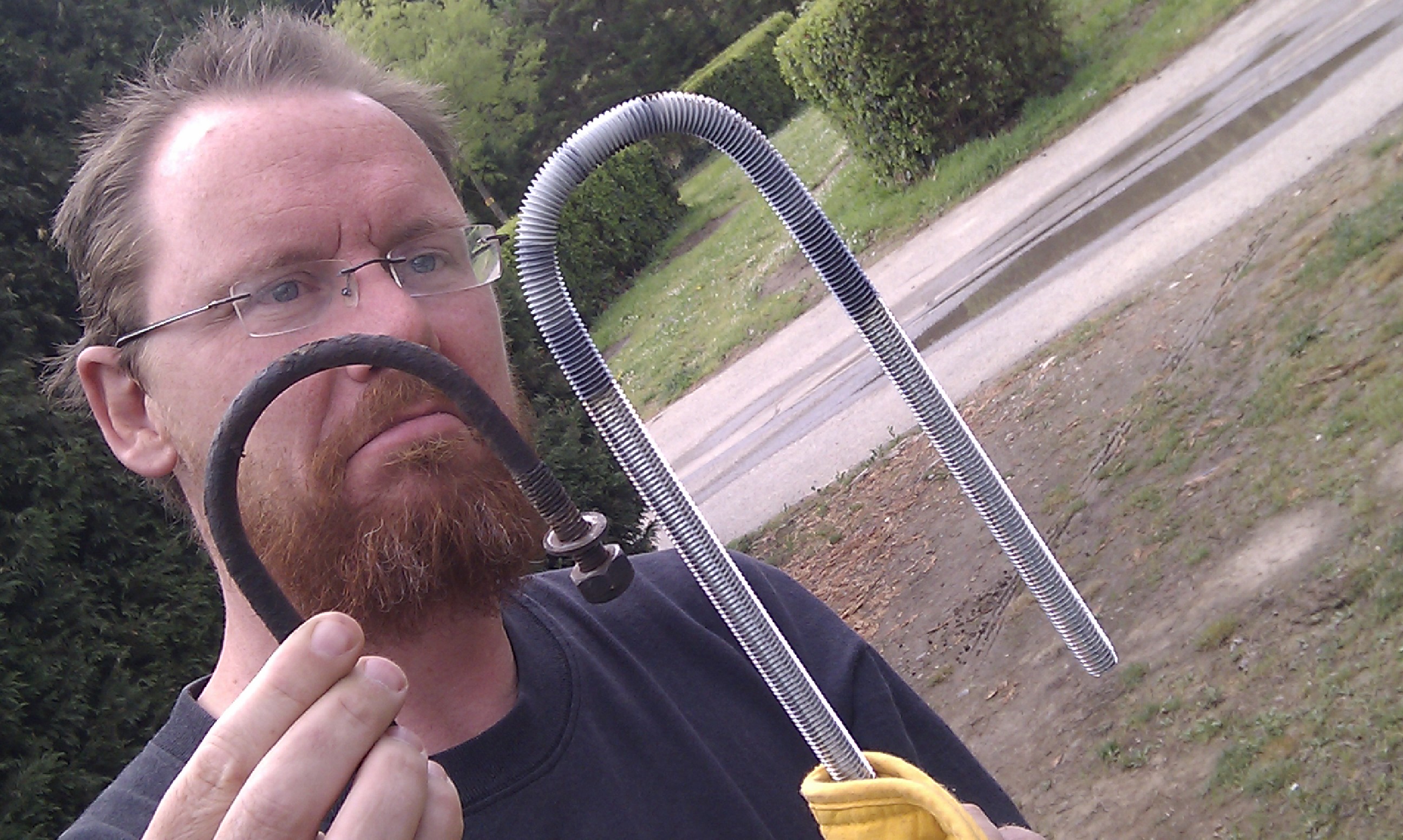 Parts made, we discovered the nuts we’d bought were too small – seems the rod is 12mm not 10mm (lord knows what the woman on the till charged us for, but as it was less than €2 it makes sense she got something wrong there!). So, we were back at reception getting directions to a shop within walking distance. As I got the details J found a tick on Charlie. It was his first one ever, and huge! We grabbed the tick remover and twisted it off, it was disgusting and full of poor Charlie’s blood when we squashed it on the pavement (don’t want it hanging around and getting back on him).