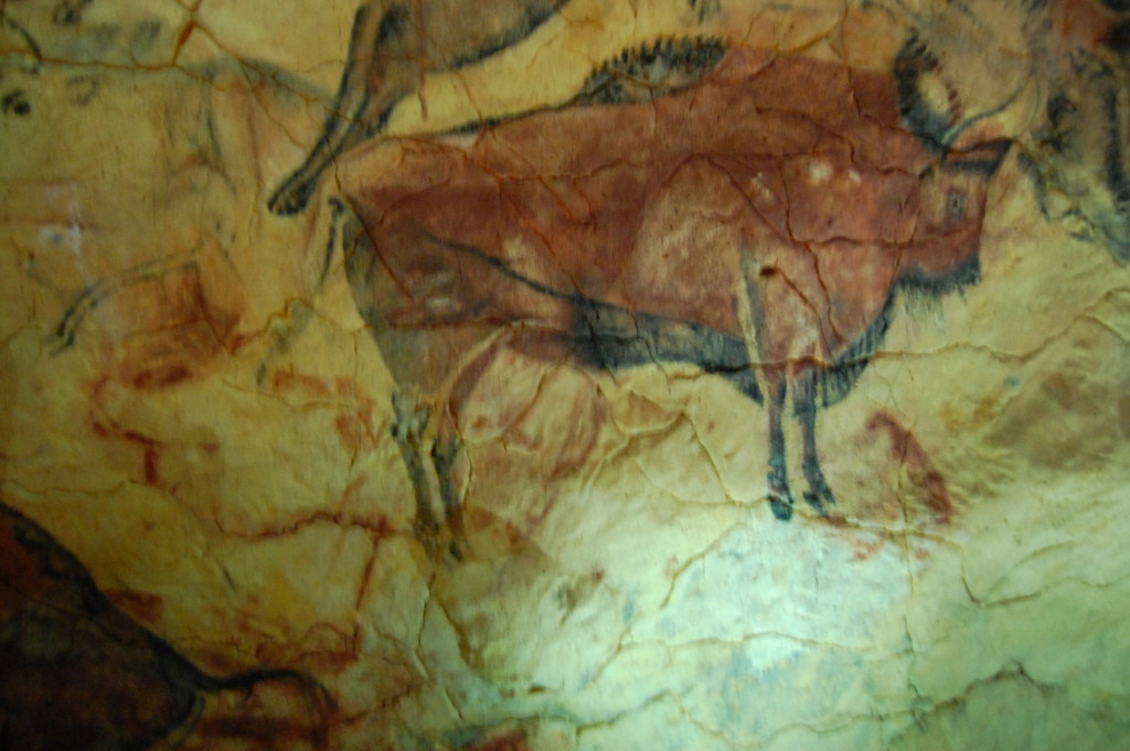 - Altamira cave recreated. We passed the real caves in Spain but the public are not allowed in. A theory is the animals were painted and then stabbed at with spears, making them easier to kill for real.