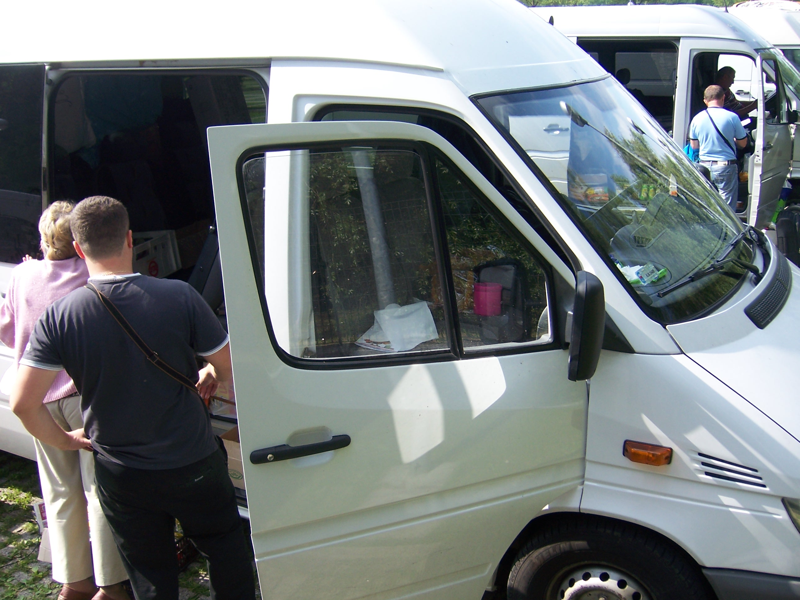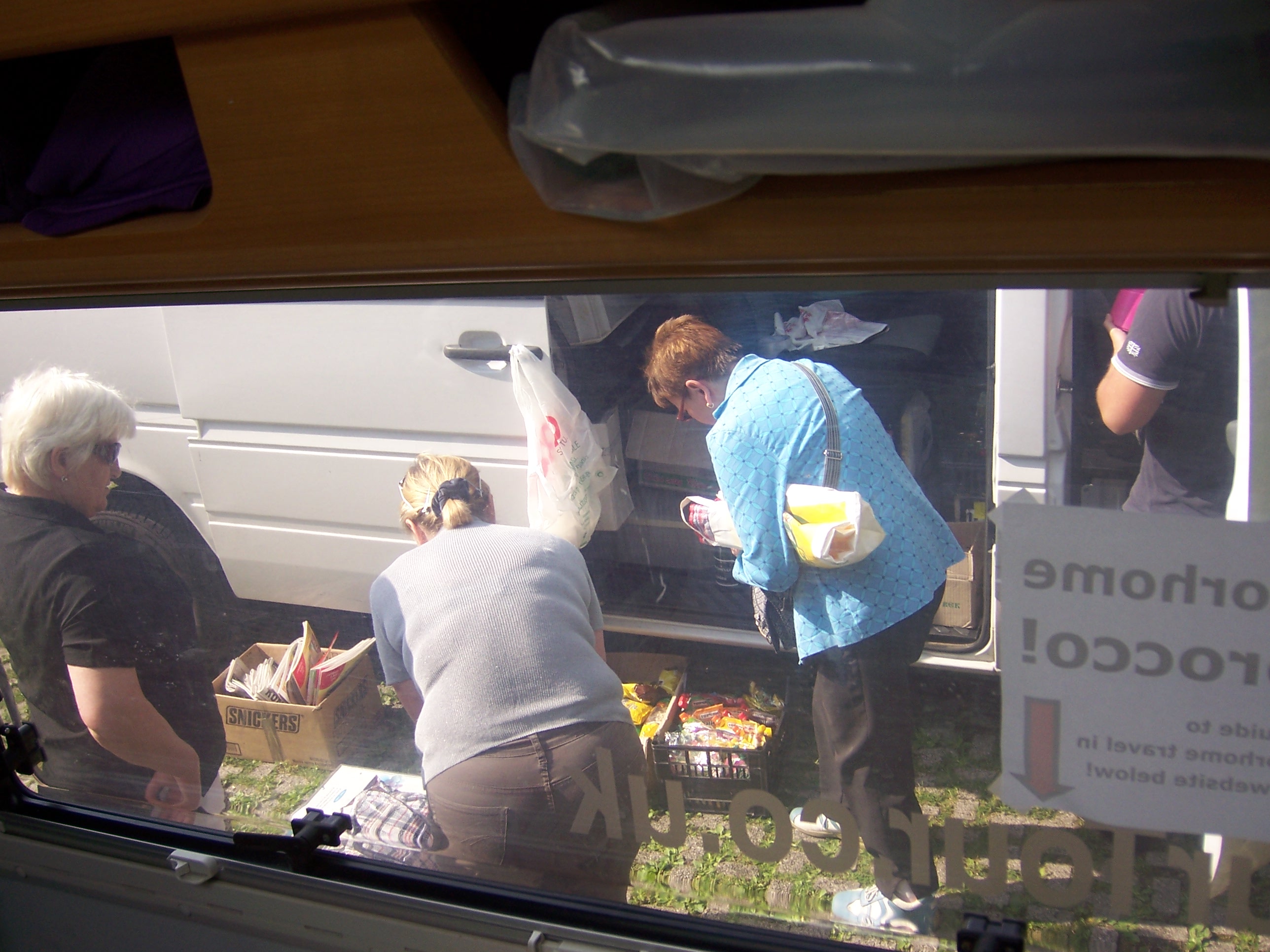 8am this morning and we woke to hear animated foreign (we had no idea of the language) voices and the sound of parcel tape being pulled off the roll. A few accidental knocks on the side of Dave and my curiousity had me pulling back the curtain. We found more Polish and Ukranian vans had arrived and were busy with a steady stream of arriving punters, collecting parcels, selling various foodstuffs, handing over newspapers, magazines and fags, all with unfamilar Russian-style writing on them. This went on until we left an hour later, euro coins and notes changing hands. We got a few smiles and hellos, softening my perception of the these hardly-looking folk a little. A friendly Italian fella at the service point explained Italian’s don’t like doing the low-paid jobs (who does?) and these vans drive across Hungary, Poland and Slovenia once a week, acting as a bus service for maids and cleaners, and at the same time parcel and food couriers for the Italian Ukranian and Polish populations.
