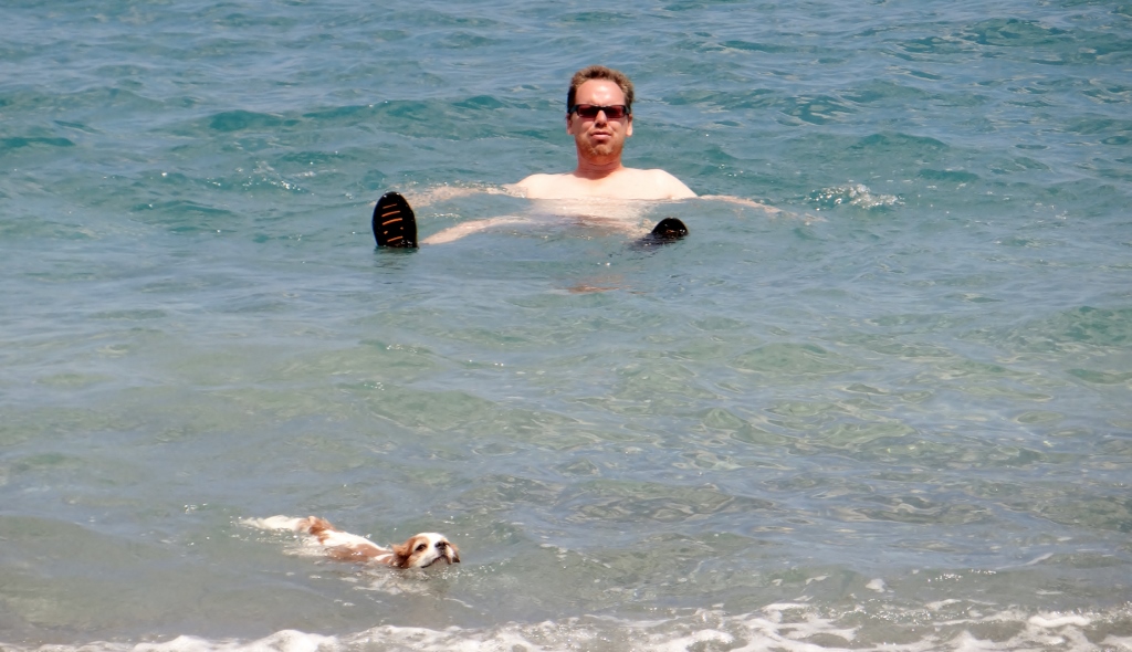 A mini-milk style ice cream for €0.50 powered me back to Dave, Jay abstained dreaming of what he’s going to cook for tea while Charlie helped by licking the stick to make sure there was none left once I’d eaten it all. We shifted Dave along to the nice flat lay by and Jay topped up Dave’s water tank using once of the beach showers (in Greece a red tap means it’s drinkable, and at the bottom of the shower was a red tap!).