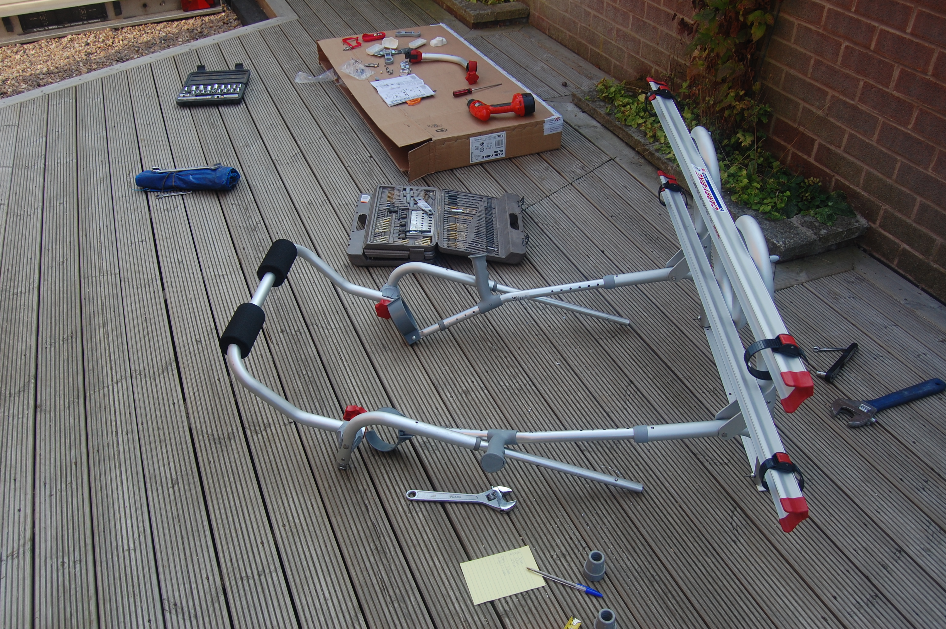 Took Charlie for a walk which took up a couple of hours and then set about the job of fitting the bike rack which came this morning. After about 30 mins of playing about with the parts I sussed there was nowhere on the back of van it could fit. If it fitted OK on the outside, avoiding window/lights/number plate, there was nowhere to install the bolts on the inside and vice versa.