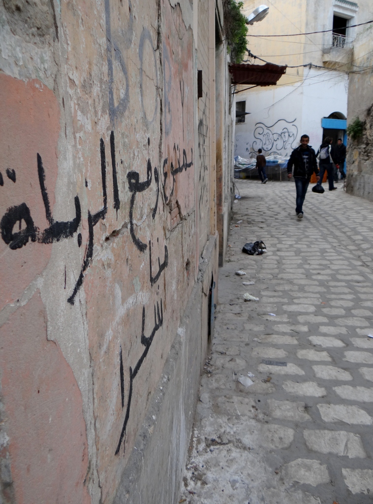 Maybe it was the midnight police wake up, maybe it was the potential bike theft, the warnings from the youth hostel security guard about thieves, or maybe we’re just here at the wrong time – on the second anniversary of the revolution – but at the moment Tunisia isn’t feeling very welcoming. Thinking back we’ve had these feelings before, a sickness in the stomach, a constant fear – it’s culture shock. I can only hope the group of men having a massive argument next to Dave leave soon (on occasions like this I pray for rain) and we get a good nights sleep. Things should look different in the morning.