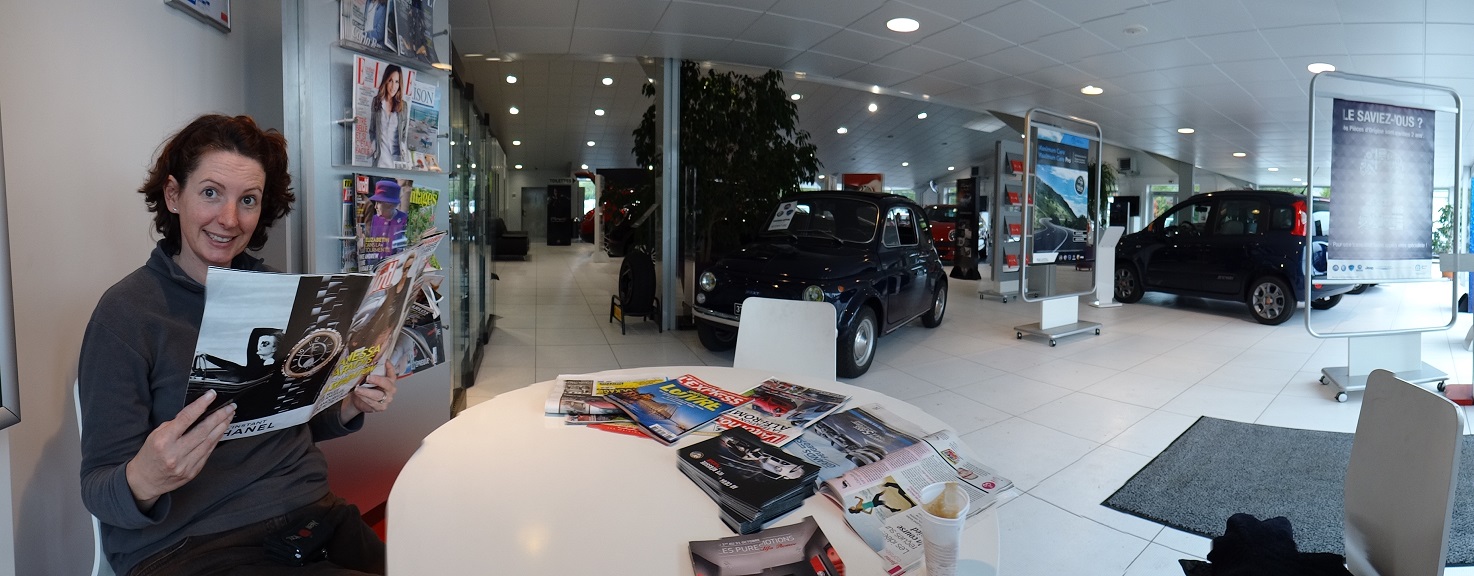 Rolling up to the garage, it took me a mo to get my bearings. French garages all (I’ve been in a handful!) seem to have a sort of concierge system. You can’t speak to the mechanics directly, but instead a kind of knowledgeable secretary-cum-manager talks to you, does a bit of triage and books you in. This time the chap sucked a few lungfuls of air, while I explained we had some tortured mice in the engine’s alternator belted area, then told us we were too big. The next thing, which always seems to happen (aka, second time for us), he told us we need a Fiat garage, and wrote down the names of places in Dieppe and Amiens. T’interweb provided the address, and off we SQUUEAAALLLLED, down the D925 to Dieppe.