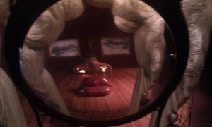 - Room made to look like the painting (see next piccy) when viewed from a lens atop a few stairs. The lips are sofa sized.