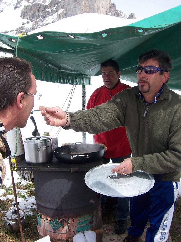 An English voice draws us to a tent, with www.thomsoncycletours.com splashed across it. A real life Bear Grylls (I eyed up his RAF dog tags) is untangling some cord being used to secure the tent to wind-resistant water bottles. I’m calling him Bear as (a) we forgot to ask his name and (b) he casually mentioned how he’d taken climbers up mile high cliff faces around here, how he spoke Arabic and Swahili (joking he didn’t speak Italian, but he did), and how he’d used dog slippers on his huskies to stop their pads freezing up. I told him he must have the biggest cahooners on the planet, he laughed it off, I’d love to see him and Bear fight it out (we met him again – see below for his real name and details).