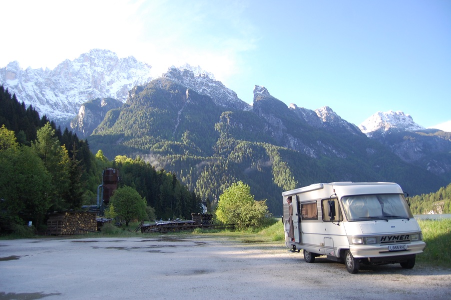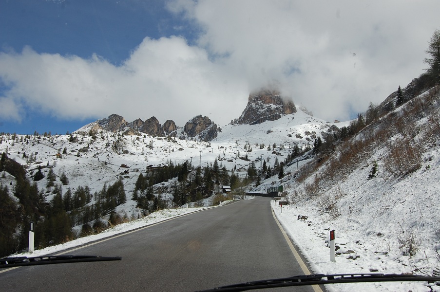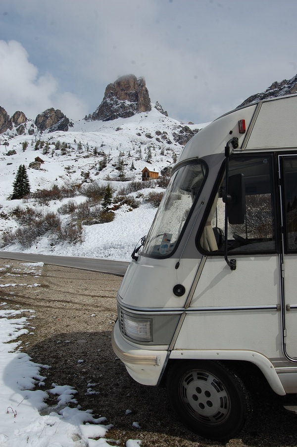 The rain had stamina last night, hammering on Dave’s roof as we drifted off to sleep, and managing to force it’s way into one or two leaky bits on his exterior. More silicon sealent needed. At the unheard-of waking hour of 7am, Ju was up, and shortly after so was I. The fluffy blanket had lifted from the jagged, snow capped peaks of the surrounding Dolomites. It was one of those ‘crane your neck up and slowly spin around’ moments, truly memorable. It must have been to get us our of bed before 8am.