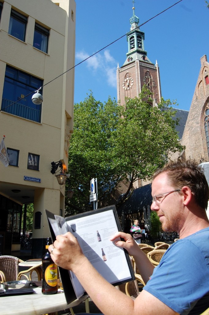 A short train ride and we’re back in Delft. We stroll through the streets with people sitting drinking by the canals (were they still here from last night?) and I start to feel happier again. I can’t pinpoint what it was about The Hague but it put me in a bad mood. It was frustrating not being able to find anything due to a rubbish map, all the sights were spread out and cyclists are everywhere – to cross the road you first have to cross a very busy cycle lane, then teeter on a narrow strip of curb before navigating the lanes of traffic and trams. I think Delft is the place for me – even if I can’t afford it’s houses or pottery.