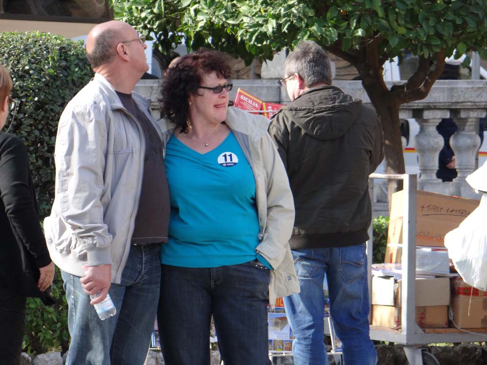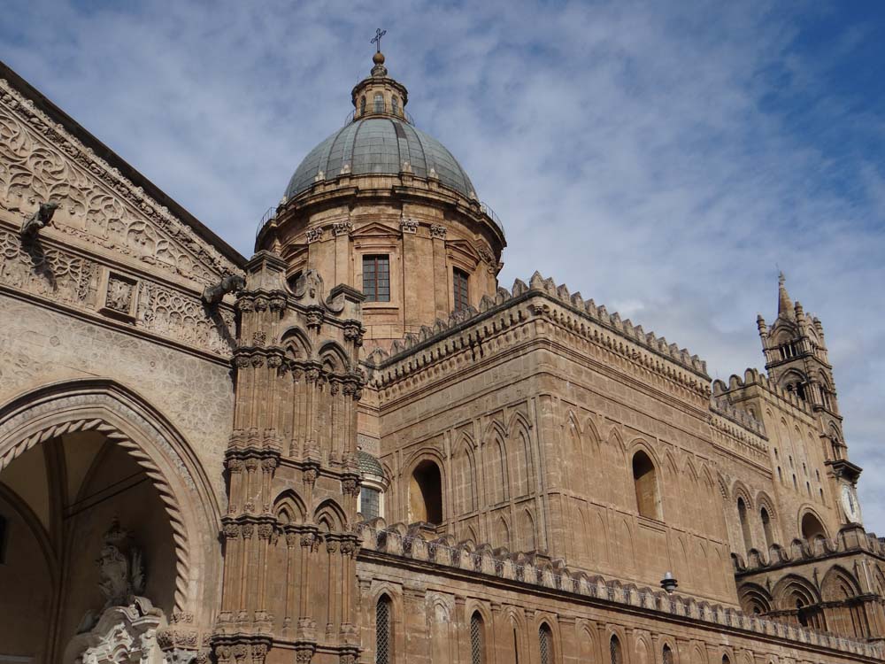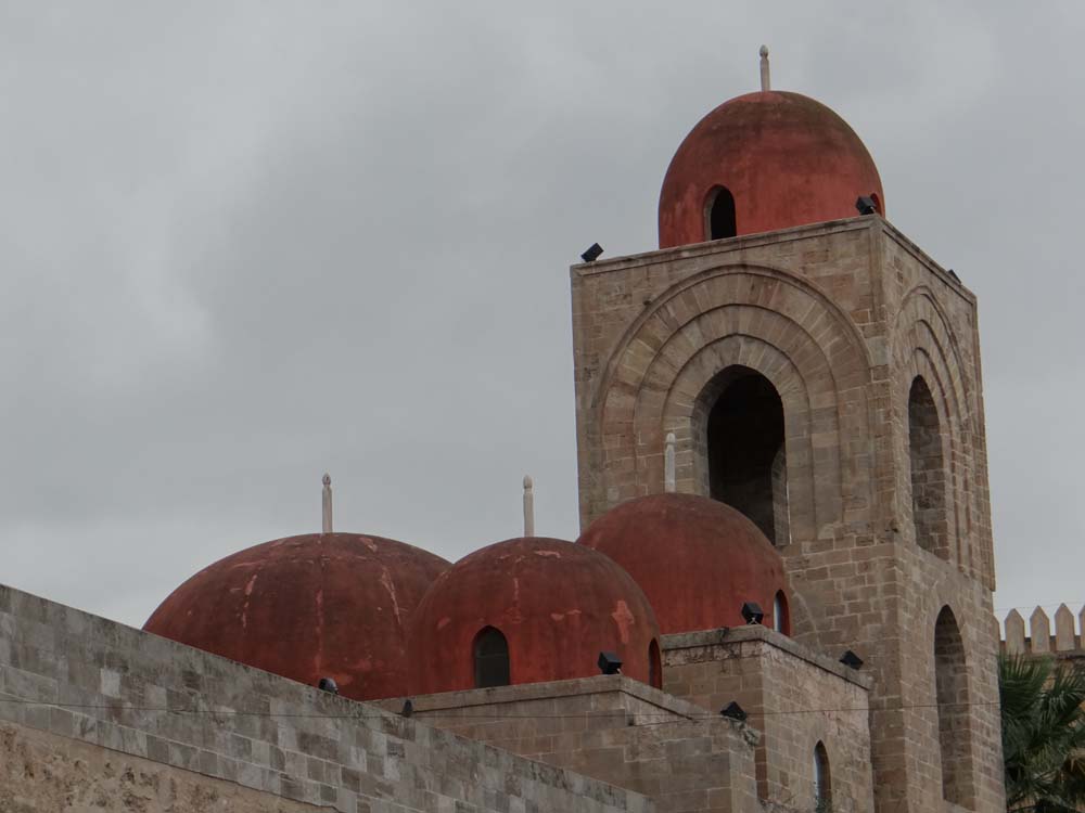 Popping out the other side, we found the contents of the cruise ships, a gaggle of coaches at jaunty angles giving the game away outside the cathedral. We have to be in the hundreds of churches by now, and they have to be something extraordinary to lift our drooping eyelids these days. Palermo’s is a mismash of styles, as is the whole place, having been inhabited by Muslim Arabs for 150-odd years, the Normans, and a whole host of other invaders. The folks from the ships had us intrigued, we see so few fellow tourists in the off season. Some had been forced to slap a sticker on them marking out their ship and, we guess, coach number, a request which would have driven me Victor Meldrew off the edge.