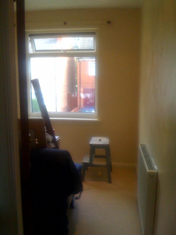 Spent the past couple of days, today, and most likely the next couple of days painting the rooms upstairs to get the place ready for renting. Our stash of B&Q’s finest magnolia is finally finding a use for itself.