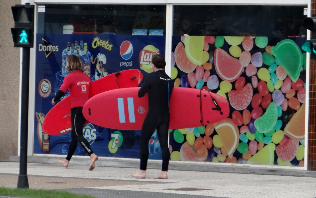 After Tony admitted that the waves might be a tad choppy, Jay was able to be washed ashore with his pride intact, and drip all the way back to the van. With Charlie tired from his walk Jay and I snuck off and caught the bus into town for some Pintxos. Think tapas, but better. Sure some of it is super touristy, but there are still little bars here that the locals nip into on their way home – we managed to have a tipple in a couple of these, and an over-priced tourist bar too.