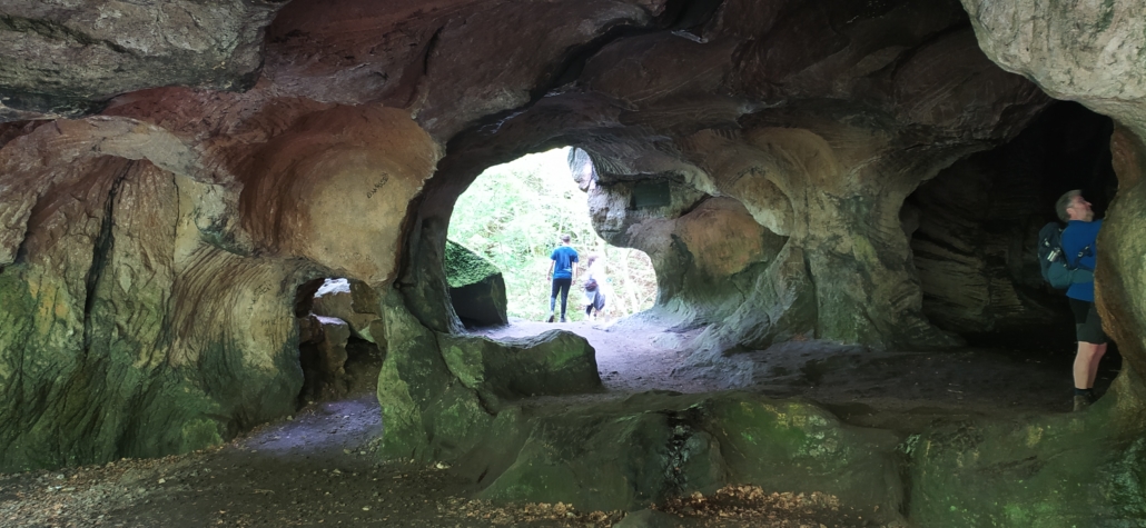 It’s a wonderful walk if (a) you don’t mind a serious number of muddy, sloping steps and (b) you like seeing enormous rock formations. This particular one was formed when a slab of sandstone split and part of it slipped down the hillside. Erosion by the river below was to blame, but it’s created a funky place to hike and ponder when the rest of the slow-motion collapse might occur. The path heads onwards for many miles, part of the 112km Mullerthal Trail through Luxembourg.