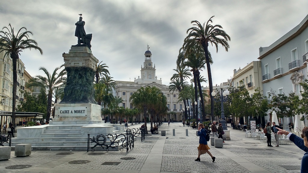 Fessing up: apart from the drive through it, a couple of jogs and a walk to the port for the bus-boat to Cadiz, we’ve not seen much of El Puerto. The place is in a great position by the sea with long, clean and light-beige sanded beaches, but the big tourist draw is clearly Cadiz, sprouting low on the horizon, across the rippling waters of the Atlantic. Also fessing up: we visited Cadiz yesterday without doing a single iota of research on the place, with just a vague notion of it being an ancient port after recalling an exhibit in Madrid’s Museo Arqueologico Nacional showing how it might have looked when the Phoneticians first established it roughly 3000 years ago (it was a distant outpost for them from their base in the Med to the east of Cyprus).