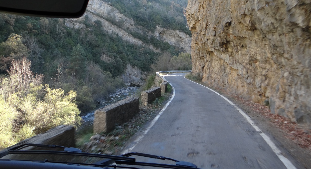 At the mention of bird watching he pointed at the Ansó valley road south. “many English come here to see this gorge, to see the houses of birds”. “The road is good, you know, no-one ever crashes here”, Ju later pointed out someone crashes somewhere, or there’s be no illicit pig-plastering on hammered driver’s battered cars to do. “The road is not big enough for two cars, but everyone takes it easy”.