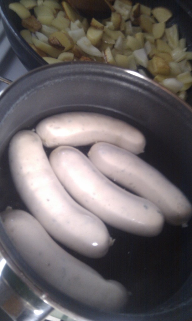 We tried Muncher white sausage today. Traditionally it’s made in the morning and eaten before noon. Our stuff came from Aldi and lasted for days. Ju eyed it up with suspicion. We cooked it in water, below the boil which might split it, for 10 minutes. It tasted of Frankfurter sausages (vaguely of nothing, like all bratwurst to us). A bit disappointed we were. Nuremberg have, no surprise here, their own variant of bratwurst but we passed up, we’re looking forward to some English meaty ones in a few weeks. Our local butcher at home makes up Spanish and Mint varieties. Drooool.