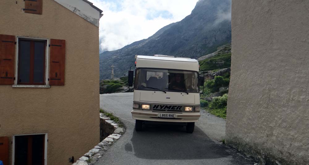 This morning the cloud had lifted a bit and we were surprised to see about 12 other motorhomes dotted around the lake at the top of the Col du Grand St Bernard, like us, having made the most of a free night of parking. We had our breakfast and got Dave ready for the off. We’d had an email from our friends Chris and Tina who we met in Spain and travelled around Morocco with. We had planned a rendez-vous with them in France in a week or so, but the email brought bad news; Christina, their motorhome, had broken down. We called them to see if there was anything we could do to help, but it’s all in the hands of a Ford garage at the moment. It’s a Bank Holiday in France today, and as tomorrow is Friday Christina won’t even be looked at until next week so they may have to get repatriated back home. We’ve got our fingers crossed that everything works out for them.