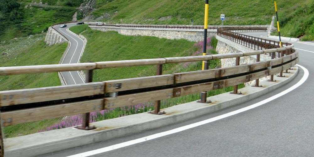 Nice of the Italian road people to put these plastic blocks on the hairpins – I’m sure they’d stop Dave from going over the edge!
