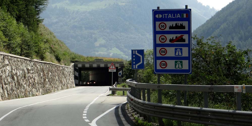 Before too long we were in amongst Italian Alpine towns, which look exactly the same as Swiss and French Alpine towns except the road signs and names are slightly different. Reaching Aosta we baulked at the price of diesel and crossed our fingers that Dave’s quarter of a tank would be enough to get us over the next mountain pass and back into France. We trundled our way along the road towards the ski resort of Courmayeur (at the opposite end of the Mount Blanc tunnel to Chamonix) behind a very slow Italian registered car, which isn’t a sight we’re used to. The reason was soon explained as we could see the silhouettes of waving hands up front – the driver and passenger were deep in conversation, and of course conversations in Italian require your hands.