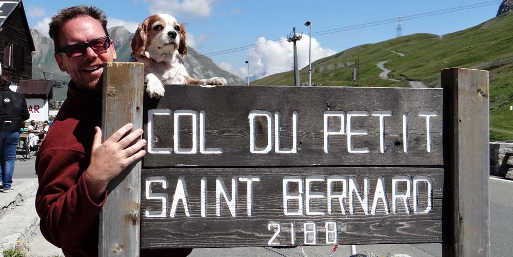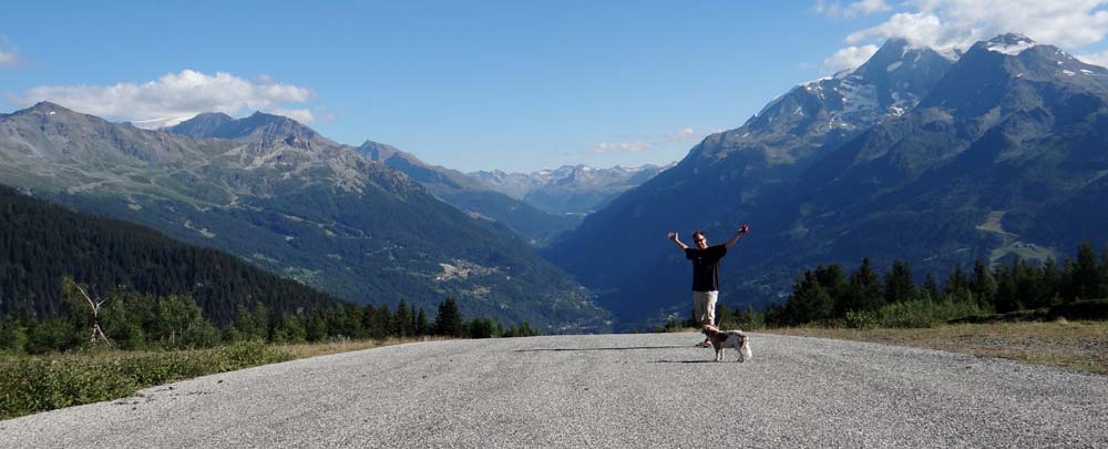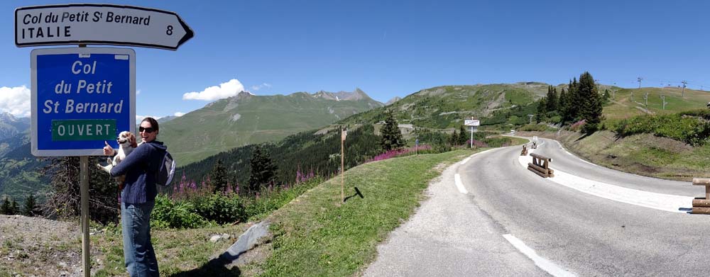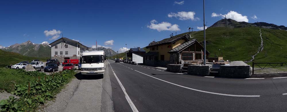 As we reached the ski resort of La Thuile we planned to stop and get some lovely Italian ice cream, but the bank holiday (L’Assomption de Marie) crowds had other ideas and every square inch of parking space was taken. So Dave wearily crawled on with Jay’s shoulder getting worse with each hairpin – and there were lots of them. Finally we reached the top and found a cheeky space by the side of the road to pull in.