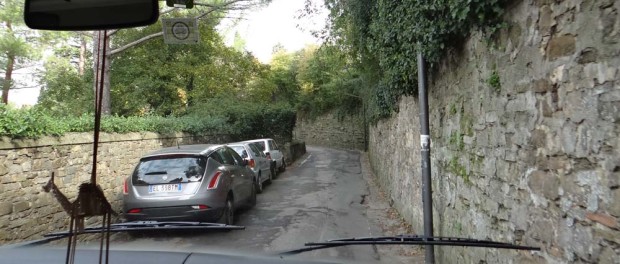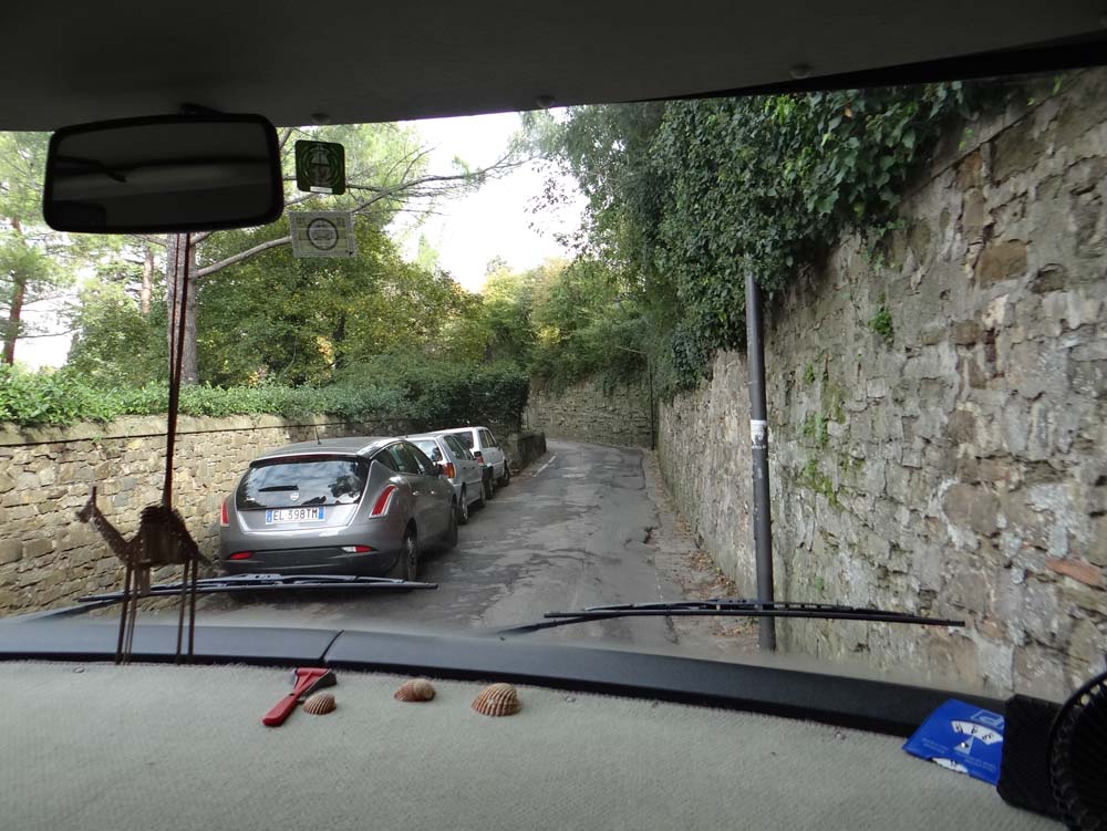 Driving around Florence, elbows-in time. Dave’s wing mirrors are being used to feel our way, like a cat’s whiskers.
