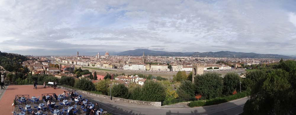 Overlooked by another enormous David, naked of course, as per the Renaissance way, stares from the square over a few artist stalls and out over the city. It’s some sight. The duomo dominates, an anchored ornate ship standing high and solid amongst a frozen crashing sea of red roofs. We stared, trying to pick out the details in the masterpiece, upping our camera to 18 megapixels for a raft of shots, and cooking up a fish-finger sandwich to scoff on the square steps.