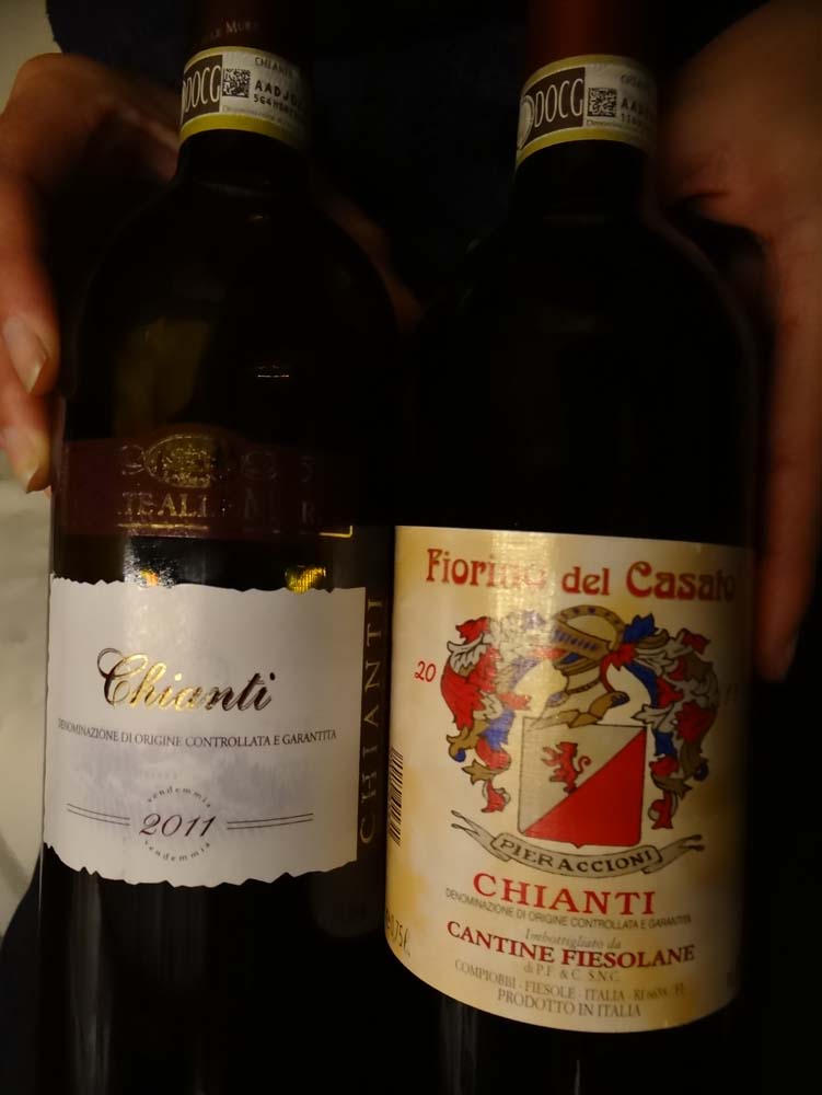 Outside, shops were opening up, but folks seemed thin on the ground, until we found them all packed tight into the Co-Op, waving and chatting with one-another. On a mission for low-cost local Chianti, we succeeded on one count only. Either only foreigners buy from the Greve Co-Op, or the locals won’t make do with anything less than DOCG. The cheapest wine was €3:80, the most expensive over €28. All of them were DOCG, which makes the classification a bit useless for us.