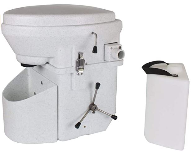 ‘Composting’ toilets like the popular Nature’s Head model shown here separate your wee and poop. It does this by simply collecting the liquid from the front of the bowl, so men have to sit when they use it. This allows you to later pour your wee away where it’s OK to do so (away from water courses etc) or store it in a larger separate waste water carrier for disposal in a service or Elsan point later on.