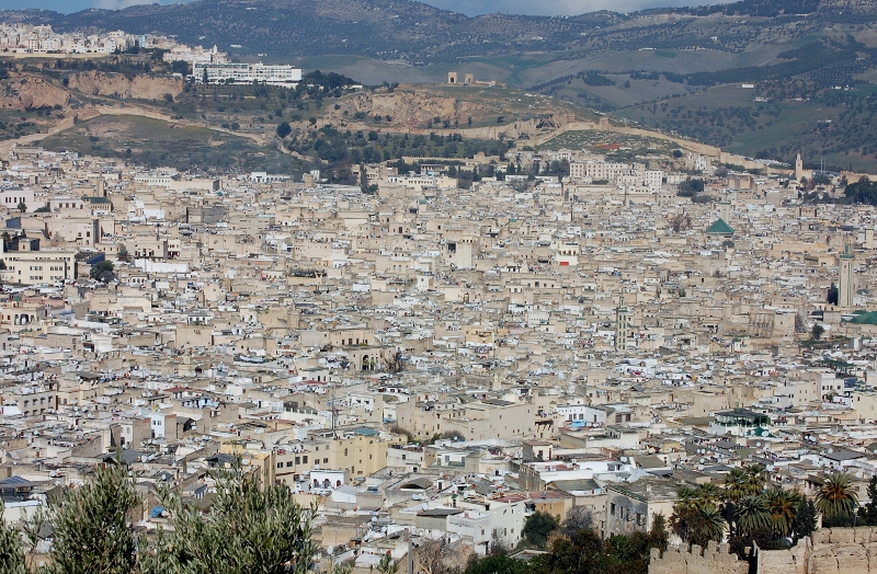 We were then taken to a fort on a nearby hill to see a great panorama of the city. We were told there are over 160 mosques in the Medina (old town) and you could clearly see the green roofs speckled among the beige buildings and millions of satelite dishs. If about a million people live here, then it looks like each one has their own dish.