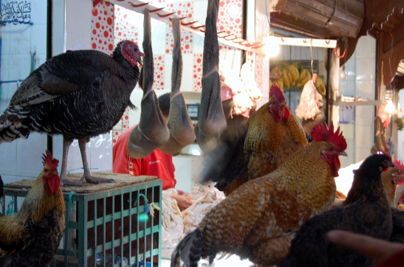 Lunch was on a restaurant roof terrace over-looking the roof-tops and as we sat up there we could hear the call to prayer from all of the minerets across the city. I couldn’t face the chicken after a look around at the wrong time in the souk and I came face to face with a chicken being killed and saw it’s feet wiggle as it went into the plucking machine – yuk! Then again, it was only marginally worse than some of the things on sale in the butchers!
