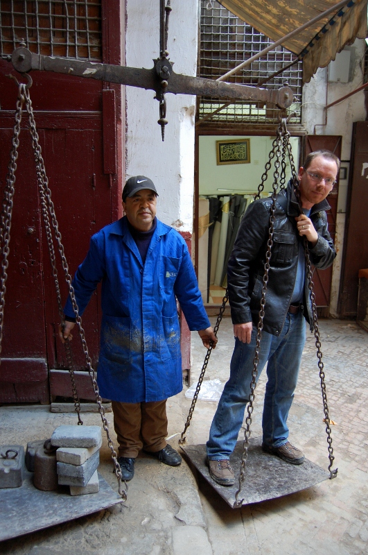 We walked about for several hours in the souks (covering about 5km) visiting tiny workshops where people were making the items on sale – metal work, wood work, weaving, spinning yarn, leather goods and even the tanneries where they make the leather (unfortunately this was done with lime and pigeon poo to soften it, then donkey and horse wee – image the smell, we were all given some mint to sniff as we approached).