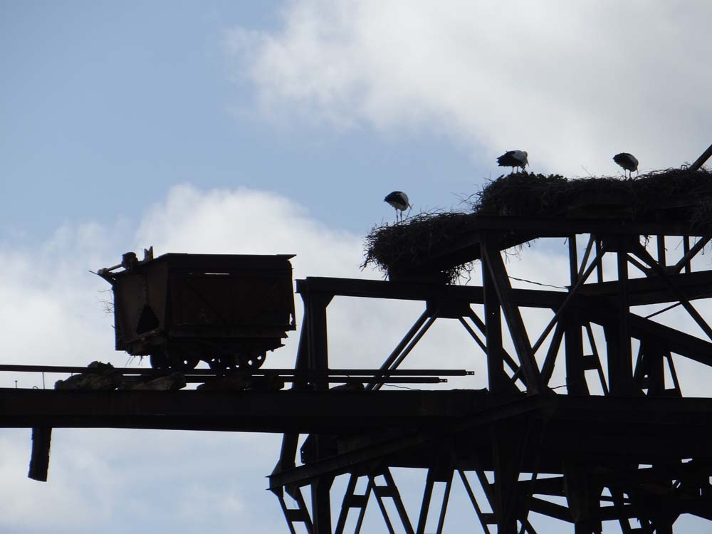 Being able to stop anywhere with zero chance of begging nippers or sellers is fab. We spotted these storks on an abandoned mine work and grabbed a photo.