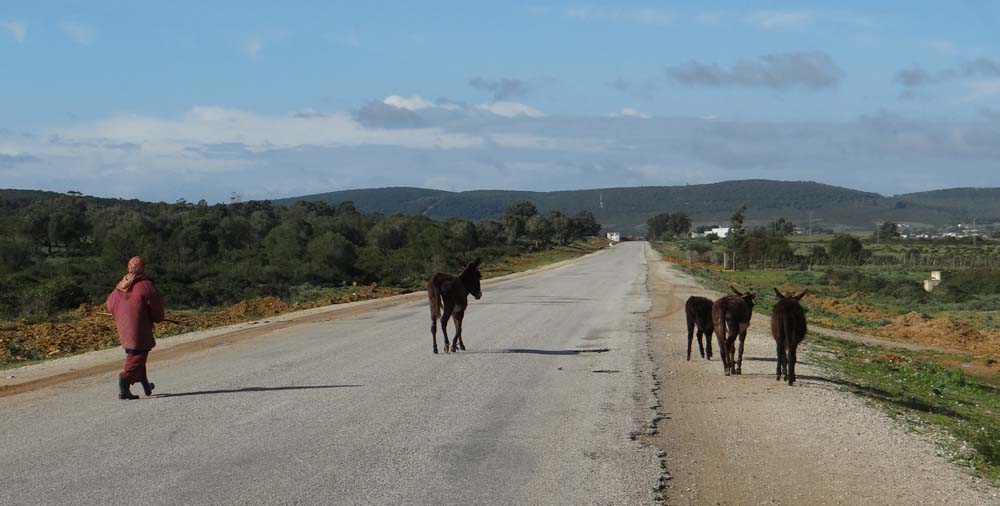 These donkeys had been naughty, popping over to the other side of the road. The lady chased them back, before turning to smile and wave to Ju.