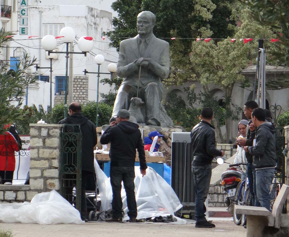 Dropping down slowly from the hills to the port of Tabarka, the road led us past some rambling suburbs, described as ‘something of a slum’, and into the small town itself. A giant saxophone at the side of the road, and then a roundabout with a huge cello had us wondering, turns out they hold music events here in summer. Ju’s GPS-less navigation skills are fully functioning and we drove straight up outside the port entrance. Just inside I spotted the blue sign of the local police and walked in. Using my best/rubbish French I explained we have a camping-car, could we stay? Sure, anywhere over there. The uniform-less man who appeared to be the boss stood up, shook my hand, and walked to the door to point out the place to park, and where there’s a cafe in the port. I asked him the cost. It’s free.