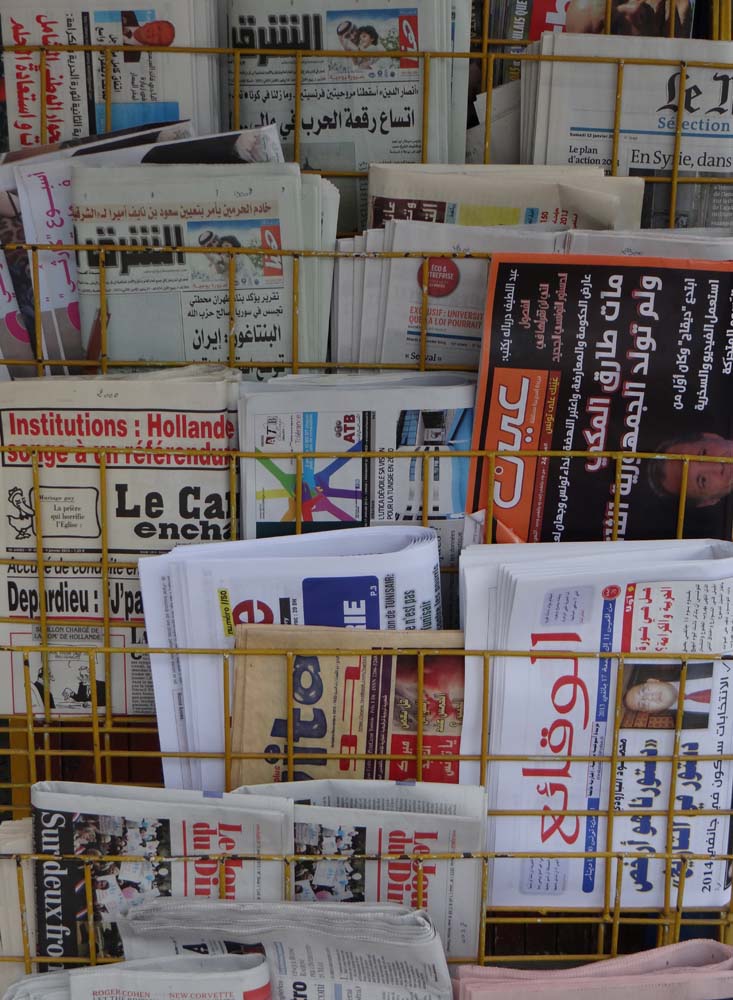 French papers? Check. Arabic? Check? English? Err. yeah, that’s weird there’s an English language paper here.