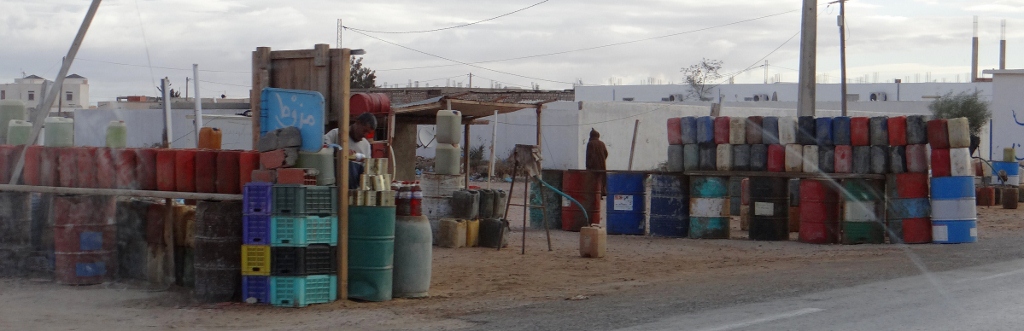 The cans in the back of that truck are full of petrol from Libya where it is so much cheaper – this is a delivery for one of the DIY petrol stations