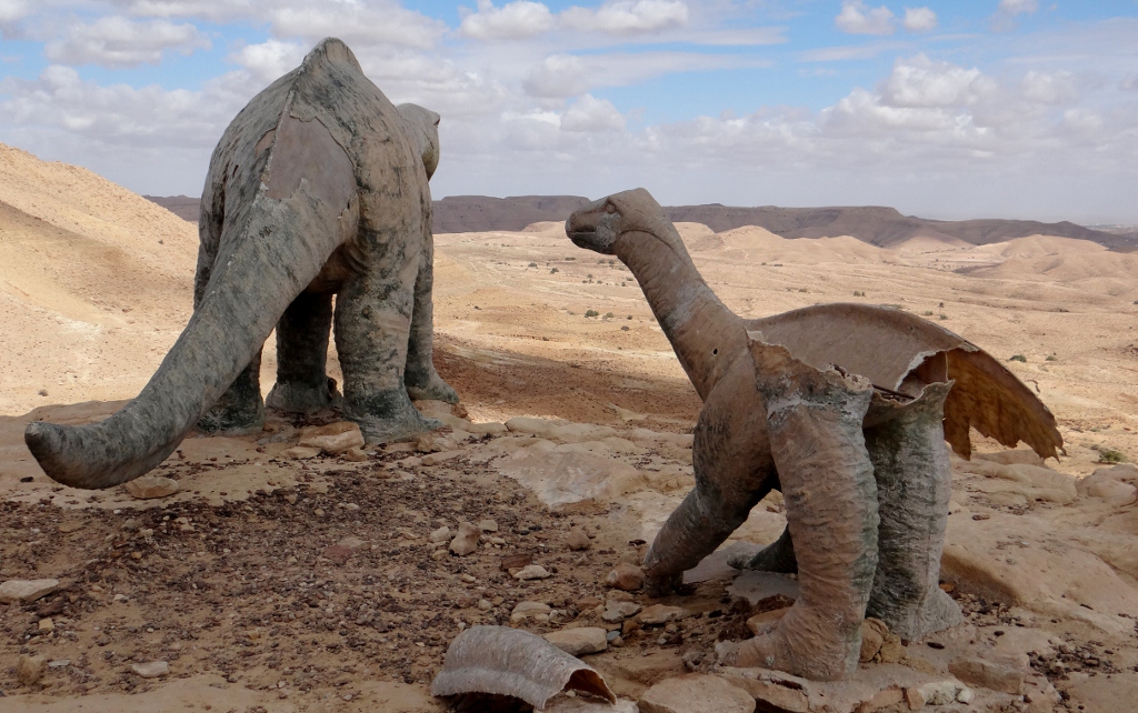 They are statues of a mother and baby iguanodon, as the skeleton of one such beastie was found nearby