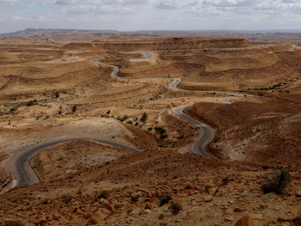 We climbed out of the valley onto the Jebel Haouaia mountains – the view back down to where we had come was breath taking