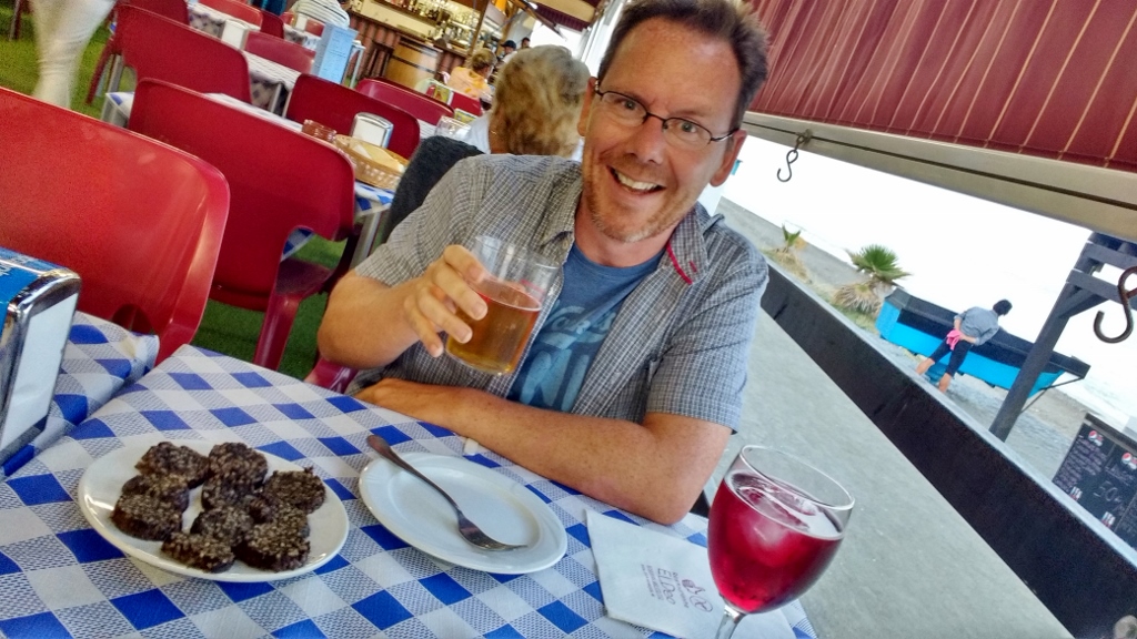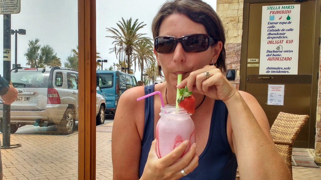 We’ve reached a decision to spend a bit more money on eating out while we are in Spain as the Spanish food is super tasty, cheap and often something you wouldn’t get at home. As our stopover for tonight was free, and Charlie needed a rest (honest), we stopped off at a cafe overlooking the sea for a drink and to watch the world go by.