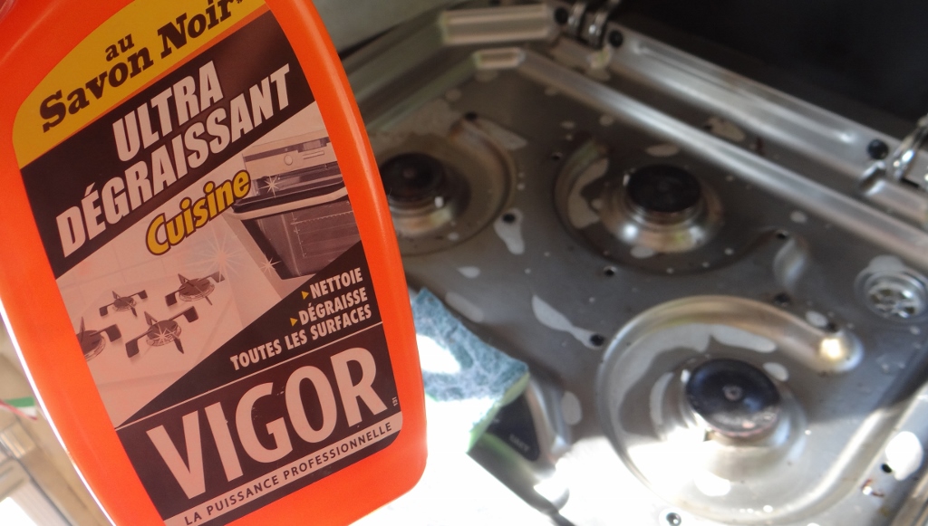 VIGOR, the cleaning solution for MEN. I attempted to clean the hob, never entirely successful, so removed and resealed the kitchen sink silicon instead.