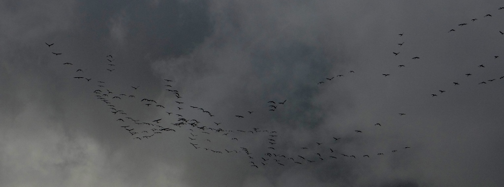 After a sudden downpour, we wandered across the road to their house, our necks craned to watch the phenomenon of several hundred cranes flying overhead on their migration south – gabbling to each other as they went.