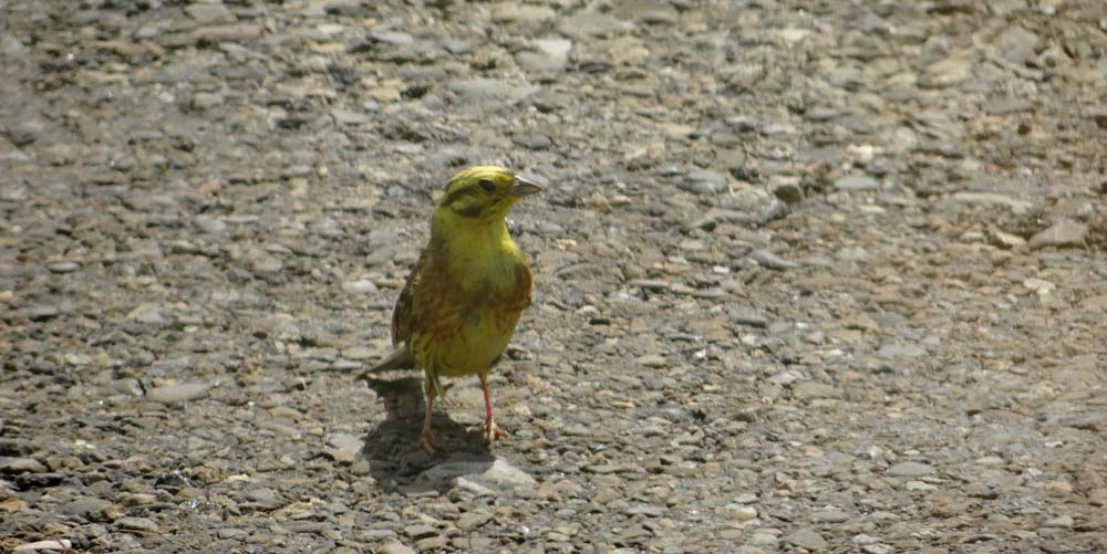 Hi folks, the yellow bird looks very much like a Yellowhammer like we have over here in UK. Or could be a European variant of Siskin.