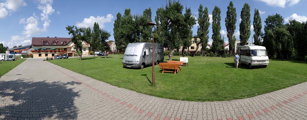 Dave the motorhome has his wheels on freshly mown, deep green grass. It feels good here at the three star Pod Jabloniami (Apple Trees) camping in Tarnow, better known on all the signs as Camping 202 (N50.02268 E20.98747)!