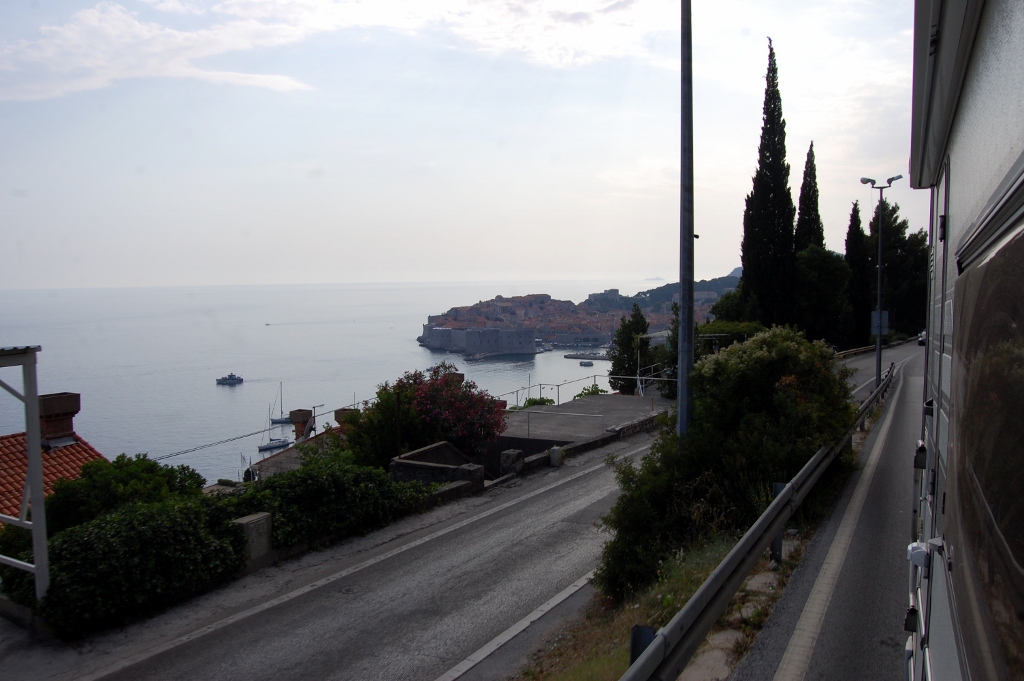 The heat of the day and the frustration at the lack of clear communications left us a bit tetchy, probably not the best frame of mind to drive a motorhome into a tourist town and try to park it. Especially not Dubrovnik. Every car park and parking meter welcomingly displayed a no camper sign or sticker. Empty spaces lined the roads a couple of kilometres from the town – well it was nearly 5pm – but we couldn’t use them. We daren’t use them, when we pulled over to look at the info on a parking meter a tow away truck pulled up behind us.