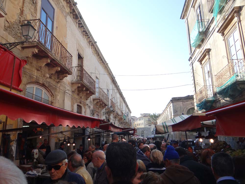 Today we’ve wandered the medieval town again behind us, the sunlight beaming down on the twisting old Jewish quarter (some of which is abandoned and rapidly returning to nature), a sardine-busy-Sicilian market and a tiny beach area good for an un-acknowledged stone-skimming competition with the locals. The place is, like everywhere in Sicily it seems, alive. Fishermen flogged their catch as soon as they untangled it from their nets this morning. Old men in dark caps and coats stood around coffee bars discussing who-knows-what. Fellow tourists, French, Americans and Italians mainly, amble about the streets with cameras, same as us, pointing them at the shaped stone and twisted metal fading signs of wealth of waves of past conquerors (including, oddly, the Normans).
