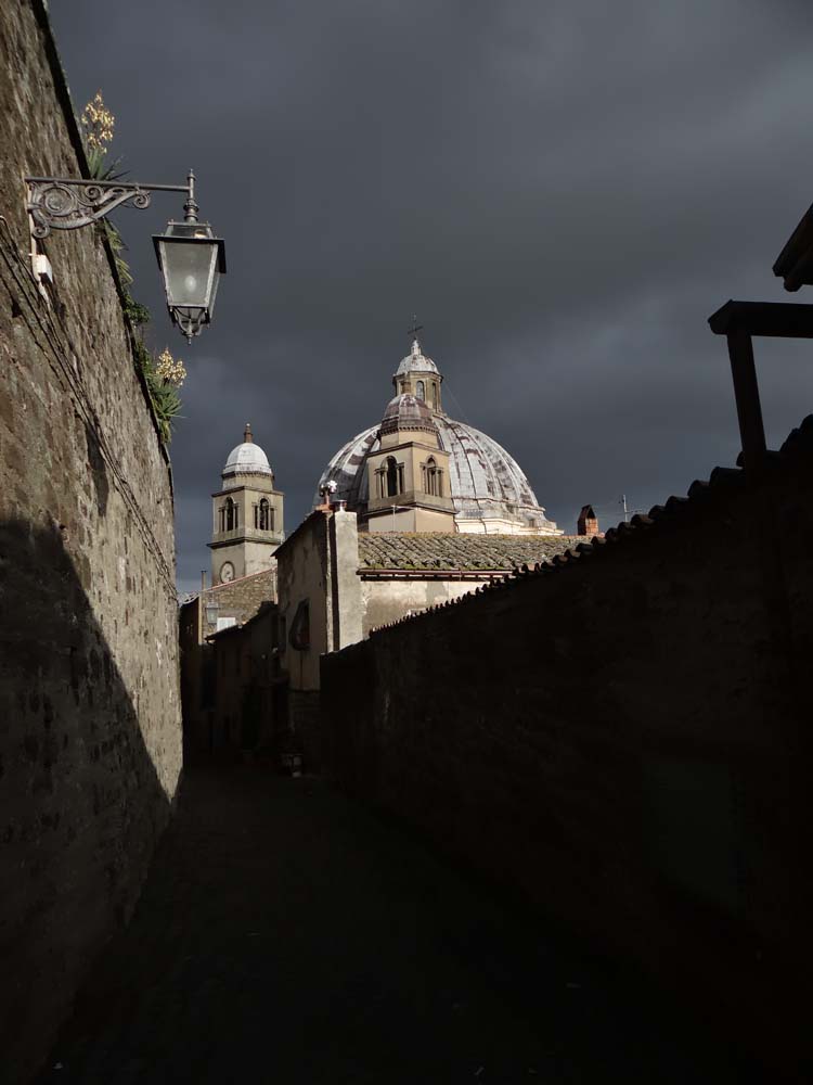 Shot of the Montefiascone Duomo under brooding skies. As I walked past mourners gathered at the door.