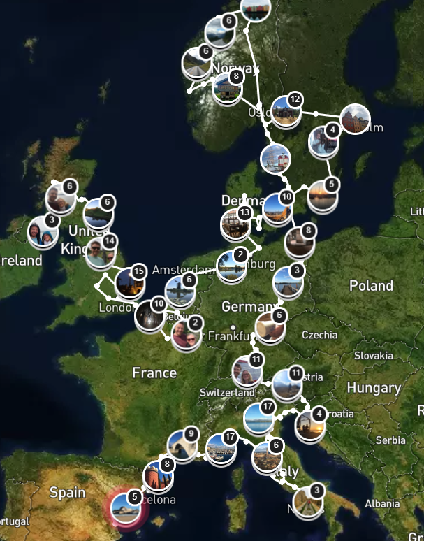 Below you’ll find a huge array of tour maps created by motorhome, vanlife and camper van travellers. These maps show the itineraries they followed and the overnight stop-overs they used (campsites, wild-camps, free-camps, aires, stellplatz, sostas, vineyards, restuarants, car parks and so on).