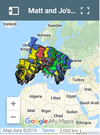 If you spot a missing map, please let us know. Send it to us at julieandjason@ourtour.co.uk! If you want to create your own map, completely free of charge, go to Google My Maps.