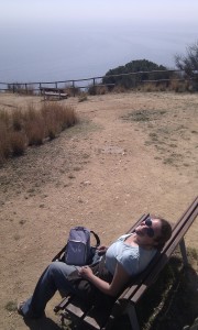 The weather is: sun, sun, sun. No clouds, enough breeze to get the FC Barcelona flag to my left fluttering in the afternoon sunlight.
