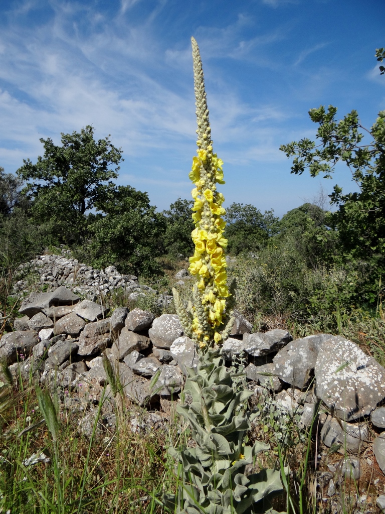 The area around here is rocky and plants are mainly scrubby things, but the odd thistle puts on a great display – only to be landed on by a huge bee thing!